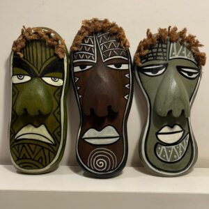 Bamboo Mask Painting #4 Hand-Painted on Bamboo (approx 4 Inches Height)