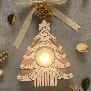 Celebrate the joy and warmth of the holiday season with this festive Set of 3 Wooden T-Light Candle Holders, beautifully handcrafted in iconic Christmas shapes?**a cheerful Santa Cap, a festive Christmas Bell, and a charming Christmas Tree.
