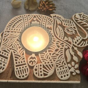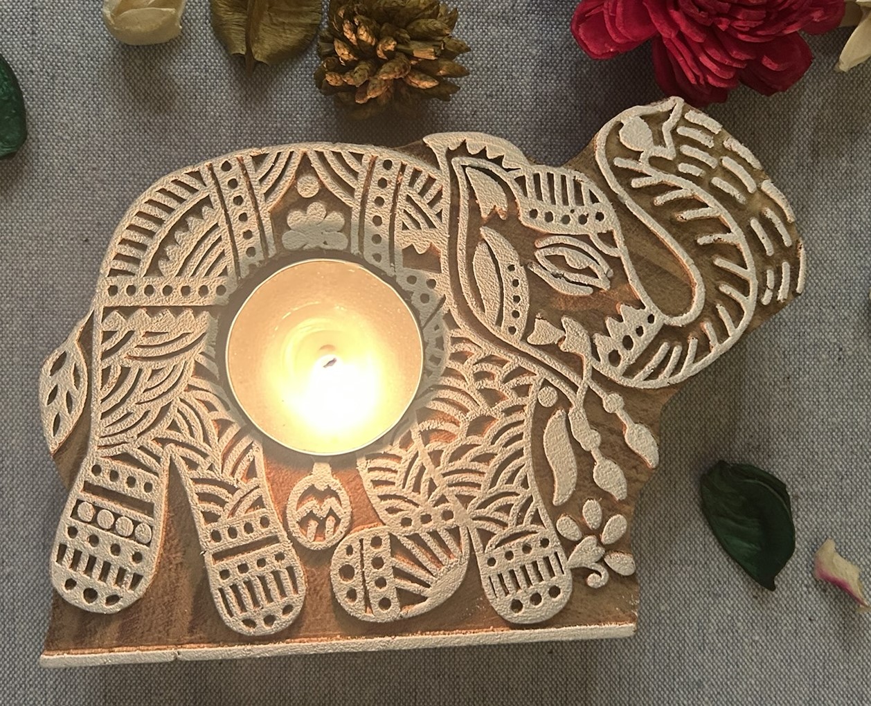 Design: Hand-carved elephant silhouette with central T-light cavity