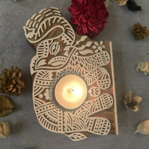 Celebrate the beauty of traditional craftsmanship with this Set of 2 Wooden Elephant T-Light Candle Holders, thoughtfully carved in the shape of elephants—symbols of strength, wisdom, and good fortune. Handcrafted from solid natural wood, these holders combine artisanal skill with cultural richness, making them a charming addition to your home décor or festive gifting.
