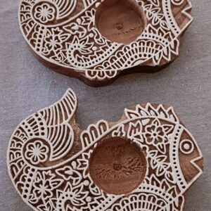 Fish – Wooden Block T-Light Candle Holders – Set of 2