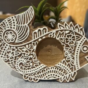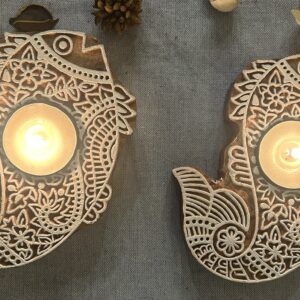 Paisely Motif – Wooden Block T-Light Candle Holders – Set of 2