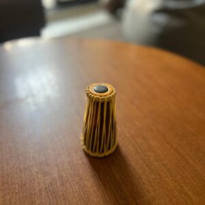 A handcrafted 4-inch miniature Pakhawaj made from teak wood and papier-m?ch?.