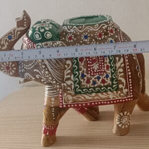 Bring home a piece of Rajasthan’s rich artistic legacy with this handcrafted wooden elephant in a natural finish, made by skilled artisans in Jodhpur. With detailed hand-painting over smooth wood grain, this elegant piece combines earthy tones with cultural charm, perfect for any home or office décor setup.