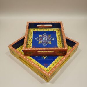 Be the first to review “Handpainted Yellow, Blue and Orange Wooden Square Tray – set of 2” Cancel reply