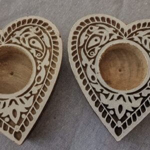 Heart #2 – Wooden Block T-Light Candle Holders – Set of 2
