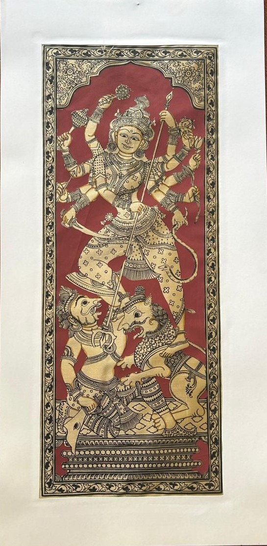 Maa Durga Pattachitra Art – Tussore Silk Painting – 6*16 inch.