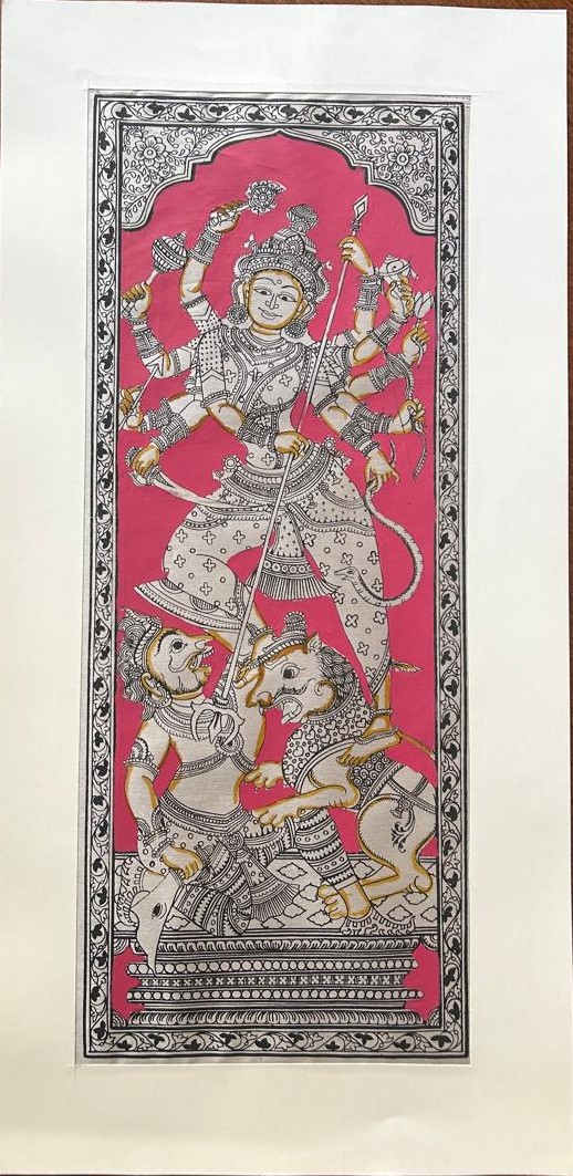 Maa Durga  Pattachitra Art – Tussore Silk Painting – 6*16 inch.