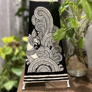 Supported by a four -legged stand, this lampshade is both decorative and functional. When illuminated, it casts a warm, colorful glow, enhancing any space with its ethnic charm and cultural elegance. A perfect blend of craftsmanship and tradition!