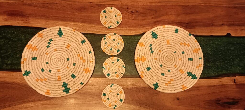 Multi – Sabai Art Handwoven Dining set – Set of 6 | 2 Table Mats (12″) & 4 Coasters (4″) |