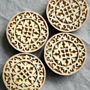 Add a touch of timeless artistry to your table with this beautiful set of Round Mandala Wooden Block Coasters. Each coaster is handcrafted from natural wood and features a detailed Mandala design, symbolizing balance and harmony.