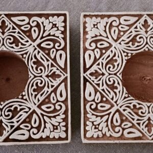 Paisely Motif – Wooden Block T-Light Candle Holders – Set of 2