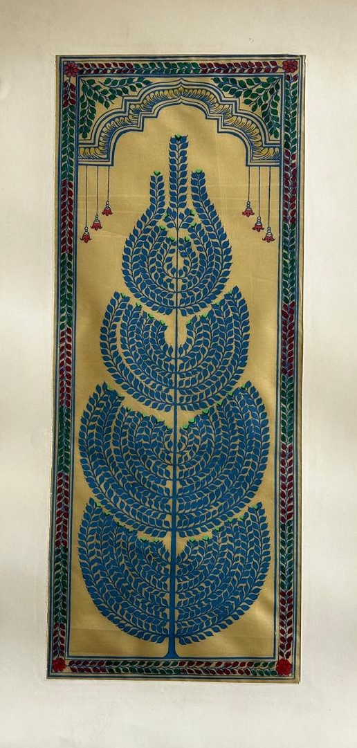 Tree of Life #37 – Pattachitra Art – Tussore Silk Painting – 6*16 inch – In Silk Cloth – Unframed