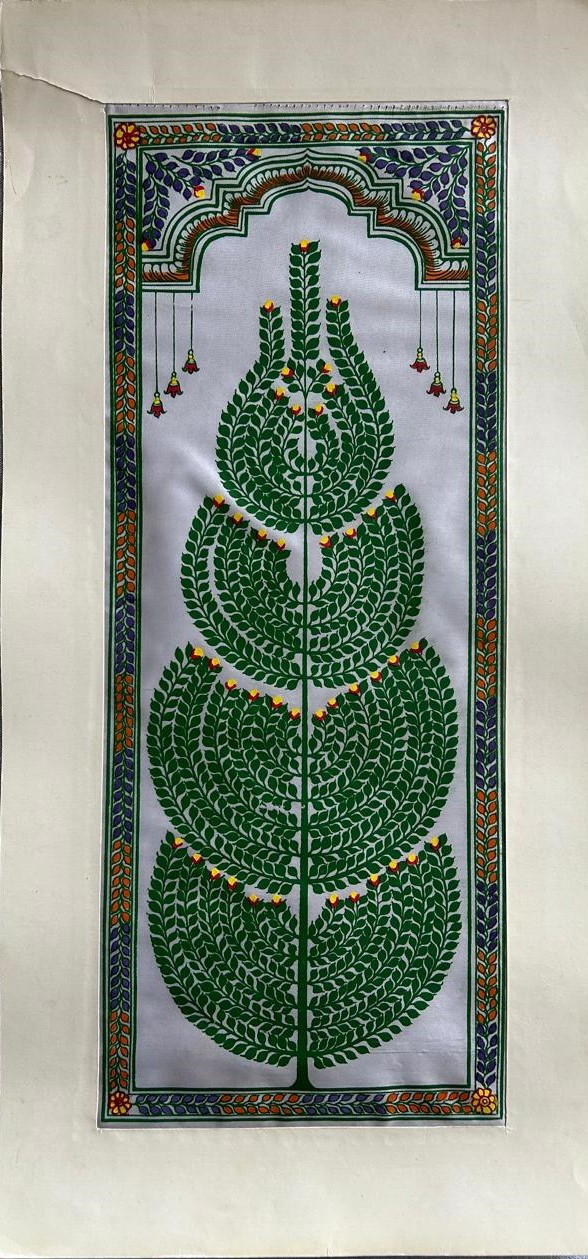 Tree of Life #29 – Pattachitra Art – Tussore Silk Painting – 6*16 inch – In Silk Cloth – Unframed