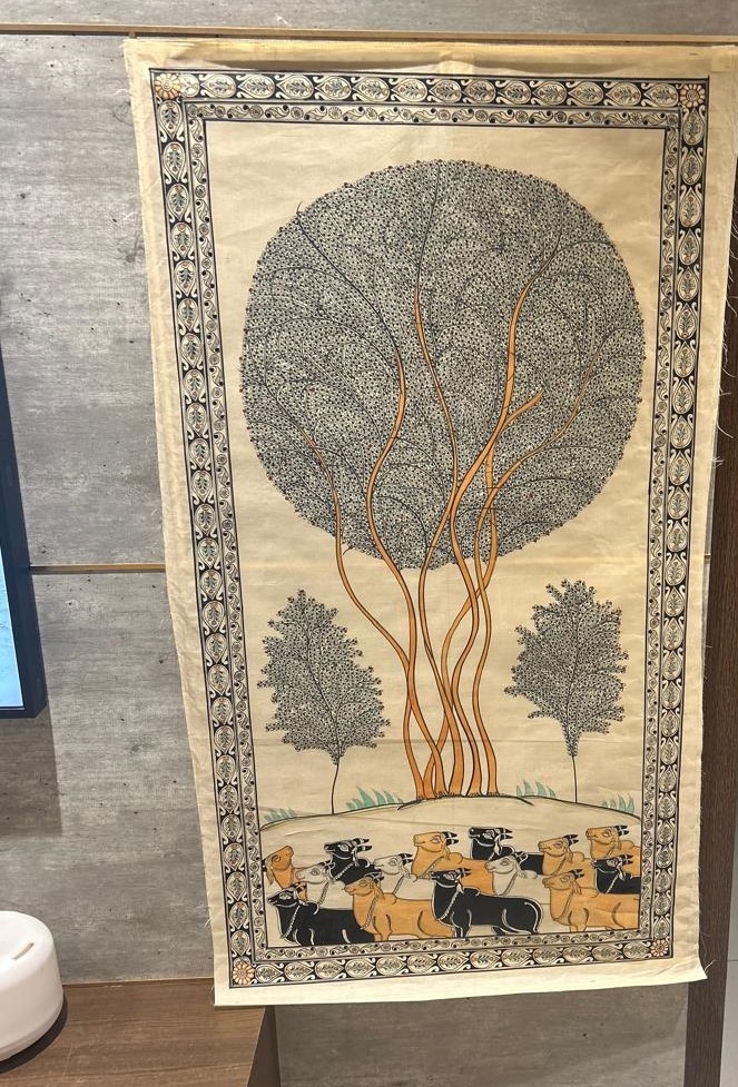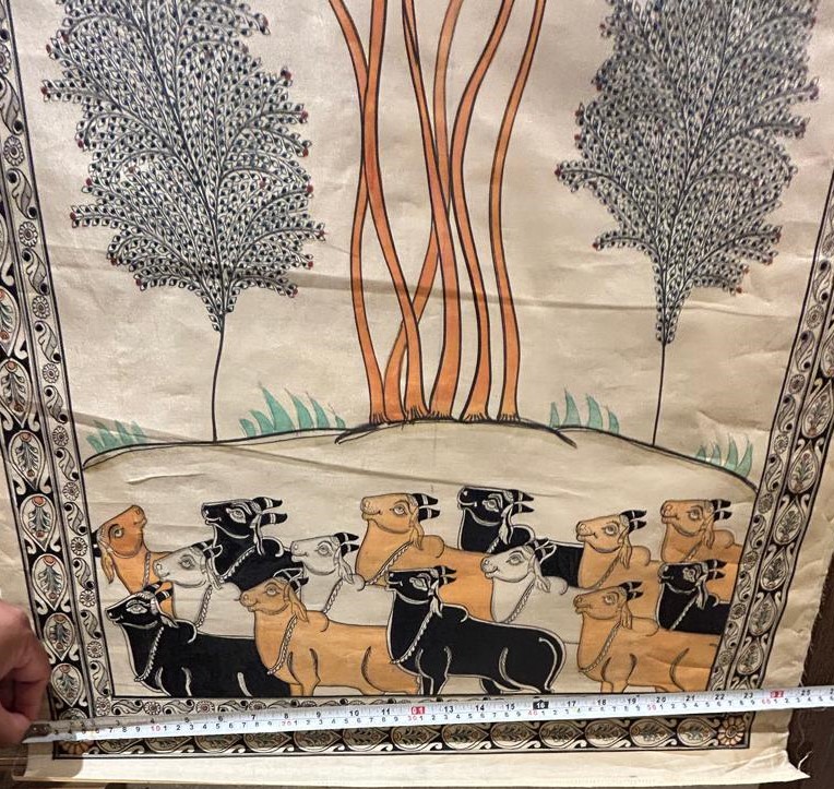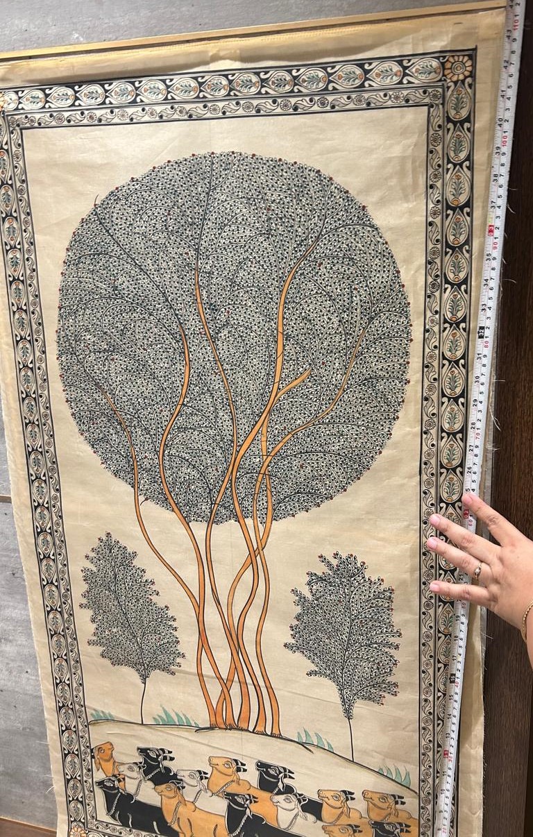 Tree of Life #Big CowPichwai2 – Pattachitra Art – Tussore Silk Painting – 44*24 inch – In Silk Cloth – Unframed