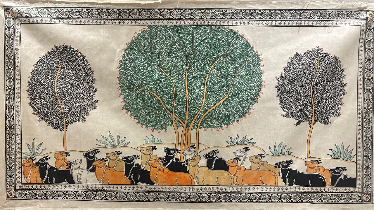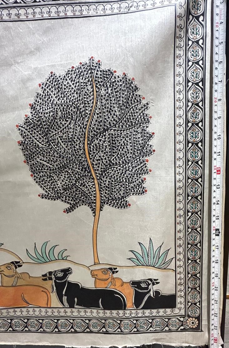 Tree of Life #Big CowPichwali1 – Pattachitra Art – Tussore Silk Painting – 24*44 inch – In Silk Cloth – Unframed