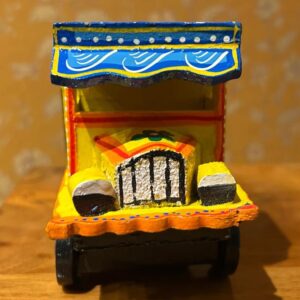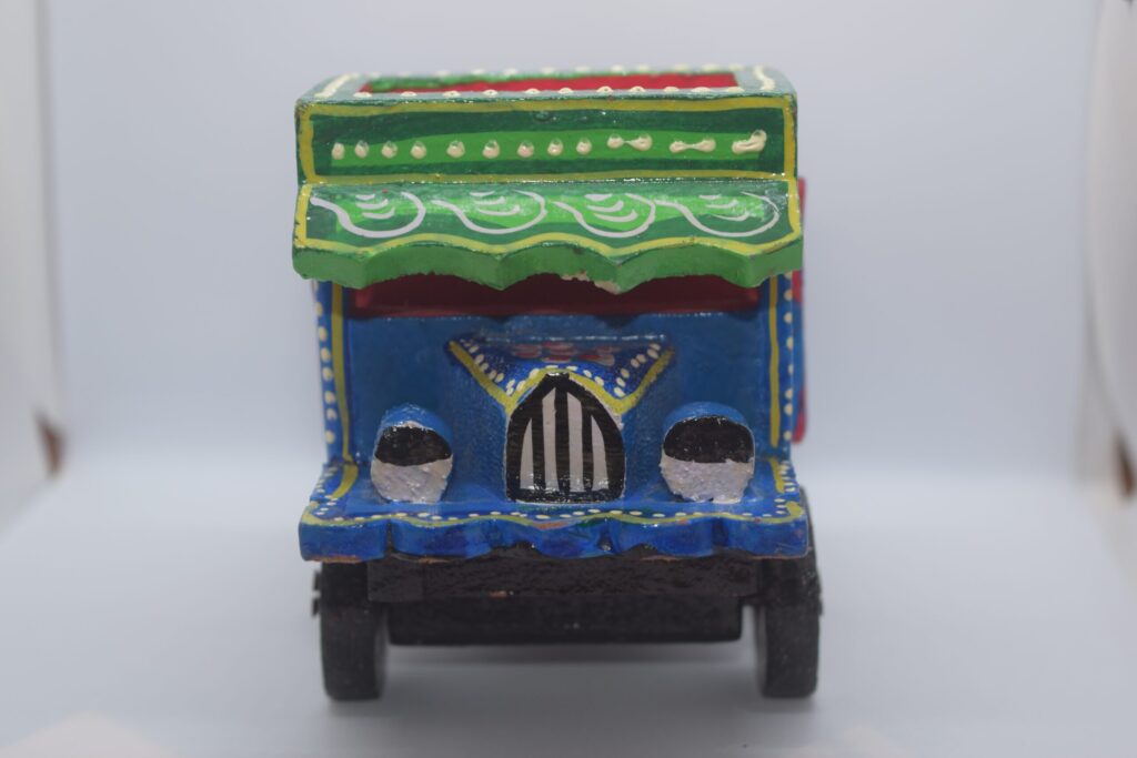 Add a burst of colour and culture to your space with this colourful handcrafted wooden lacquered truck, created by skilled artisans in Varanasi, India. This miniature truck features vibrant lacquer work and traditional hand-painted details, showcasing the rich folk art heritage of India.